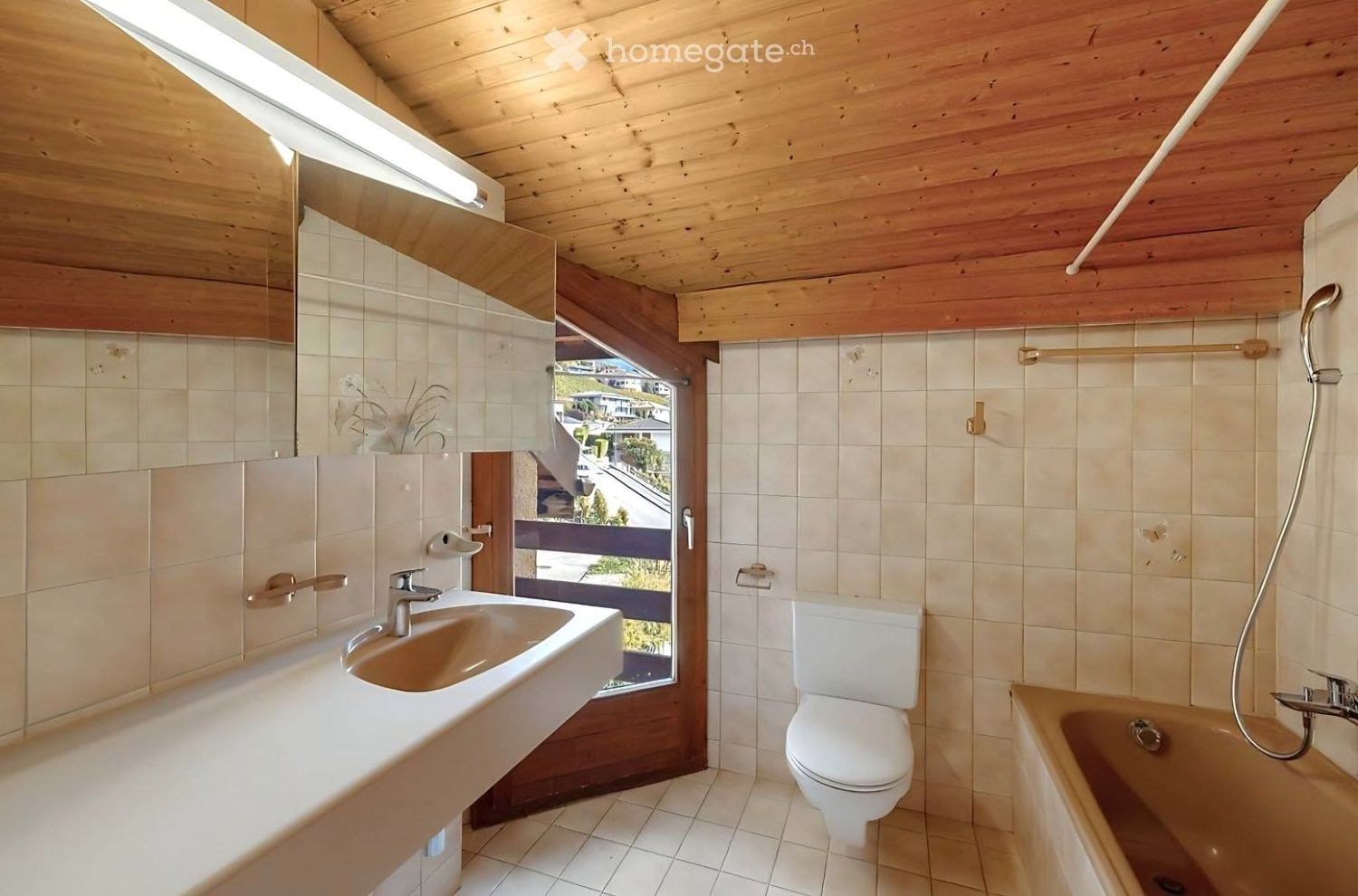 Salle de bain avec baignoire et petit balcon