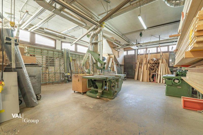 Auf 310 m2 Nutzfläche werden die Räumlichkeiten aktuell als Schreinerei genutzt. Die heute installierten Maschinen könnten demnach nach Bedarf übernommen werden. Beim Wunsch die Werkstatt anderweitig zu nutzen, wird das jetzige Mobiliar entfernt.