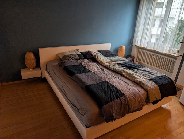 Ab Dezember 2025 vermieten wir ein unmöbliertes Zimmer (ca. 15 m²) in unserer sonst möblierten 3-Zimmer-Wohnung (von dir benutzbare Gesamtfläche: 2 Zimmer, ca. 55 m² plus Balkon). Die Wohnung wird formal als WG geführt: Wir (Paar, 32/33, berufstätig, Wochenaufenthalter in Bern) behalten ein eigenes Zimmer, sind aber nur sehr selten vor Ort (2–5 Tage im Monat, überwiegend an Wochenenden). An den restlichen Tagen steht dir die Wohnung alleine zur Verfügung. Die Wohnung liegt im 3. Stock ohne Lift und ist ausgestattet mit Geschirrspüler, 75-Zoll-Smart-TV im Wohnzimmer, Balkon mit Grill sowie Mitbenutzung von Waschmaschine und Tumbler im Haus (flexibles Waschplansystem). Ein zusätzlicher 42-Zoll-TV, der sich aktuell in deinem Zimmer befindet, darf bei Bedarf von dir benutzt werden.