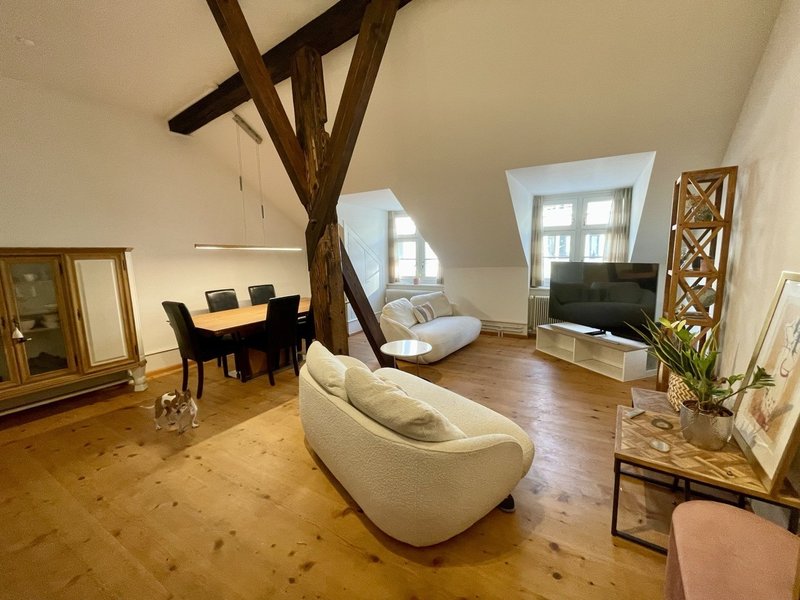 Discover this exceptional 3.5-room furnished apartment located on the 4th floor of a historic building dating back to 1351 on Schneidergasse in Basel's coveted 4051 district. Recently renovated in 2022, this 122 square meter residence perfectly blends medieval charm with modern comfort. The apartment features: