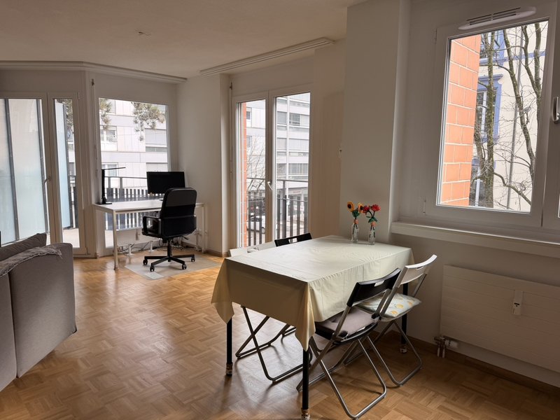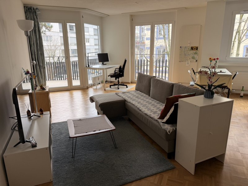 I am primarily looking for a replacement tenant for my bright and fully furnished 2.5-room apartment (Swiss standard) in the popular Gundeli (Gundeldingen) area, just a few minutes from Basel SBB.
