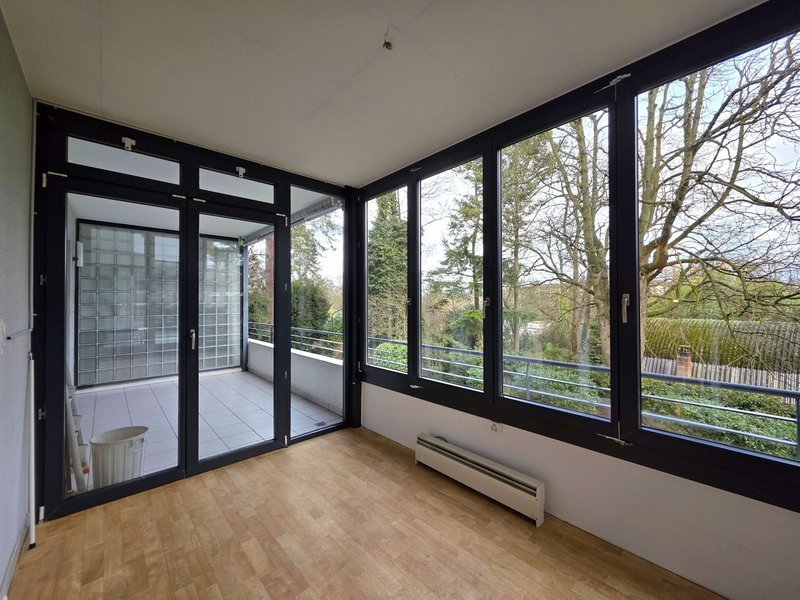 Ebenso überzeugt ein grosszügiger Flur, der der Wohnung von Anfang an eine luftige und offene Atmosphäre verleiht. Die beiden Nasszellen ergänzen das Angebot, wobei eine davon über ausreichend Platz für einen Waschturm verfügt. Der Balkon und der Wintergarten bieten Blick ins Grüne und laden so zum Entspannen ein. Hier können Sie verweilen und die Ruhe geniessen.