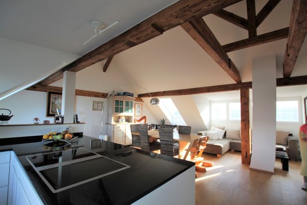Duplex apartment: 160 m², 5 bedrooms, with a spacious, easy-to-clean kitchen and living area. In Swiss terms, that’s 6.5 rooms.