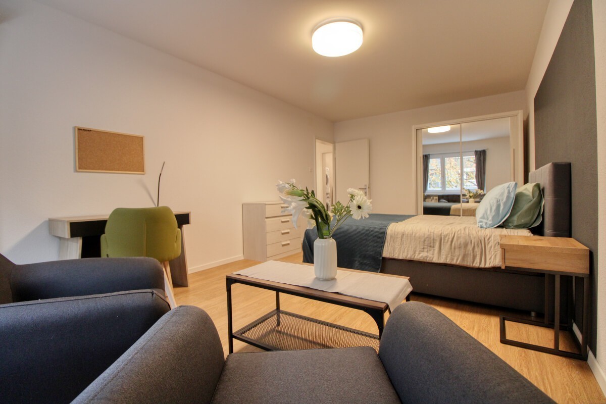 Room Estate is a provider of furnished rooms with service at various locations in Switzerland and Germany. Our tenants range from young professionals to interns to students who enjoy meeting new people as well as living in comfort and convenience. At Room Estate you can register for a room directly online. Simply create an account, register and you will be notified within 48 hours. We offer a virtual 360° tour through all of our rooms. It is also possible to rent the room without actually viewing it.