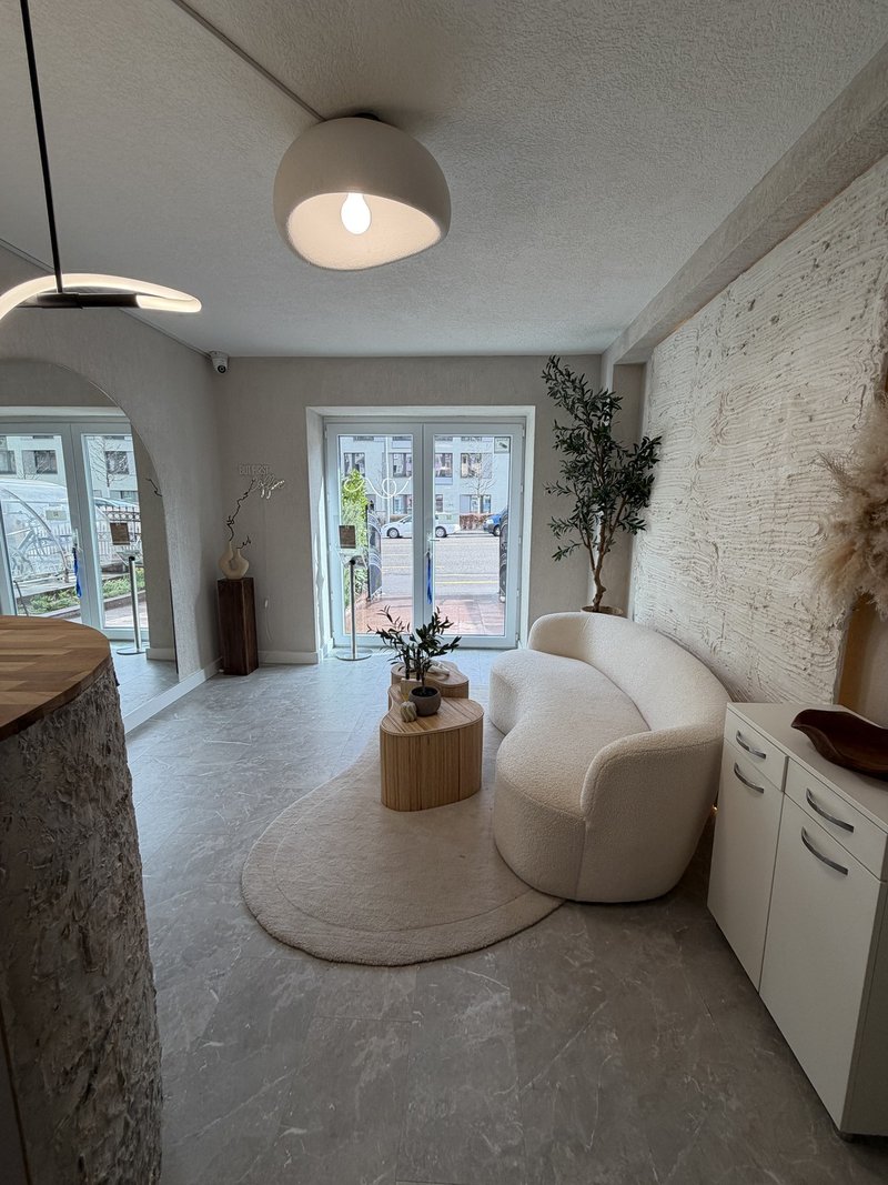 Empfangsraum: inklusive Sofa, Teppich, Tische sowie Empfangstheke ( gibt Wasseranschluss für ev. Waschbecker Friseur)