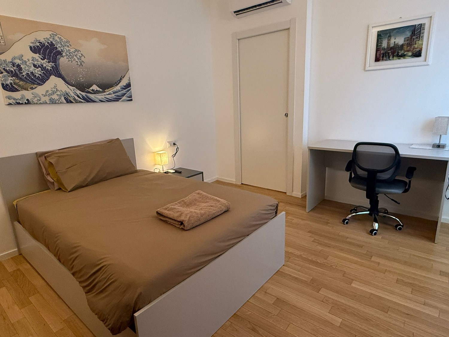 Private bedroom with linen, towels, wardrobe, desk, and fitted storage
