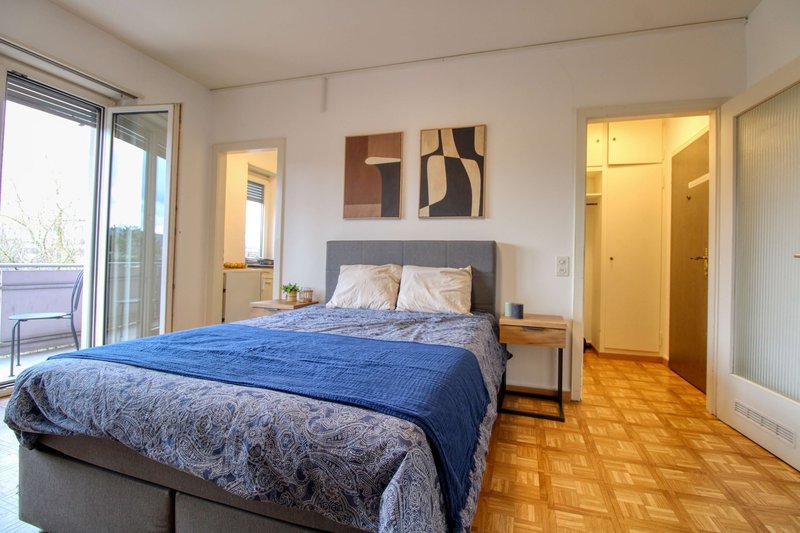 Welcome to Tony, a stylish and fully equipped studio at Riehenstrasse 163, 4058 Basel, perfect for young professionals and students looking for privacy and comfort. The spacious bedroom is designed for both work and relaxation, while the private kitchen, complete with an oven, stove, and fridge, allows for home-cooked meals. The dining area is ideal for hosting a friend or enjoying a quiet dinner, and the modern bathroom with a bathtub adds extra comfort. The studio is furnished with modern furniture and a TV, making it a cozy and functional living space.