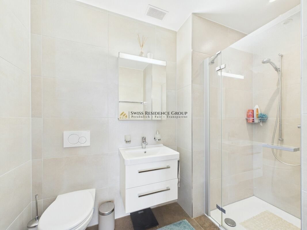 Die Wohnung verfügt über zwei moderne Nasszellen, Steinböden mit Fussbodenheizung, ein Réduit mit eigenem Waschturm sowie ein Zentralstaubsauger-System.