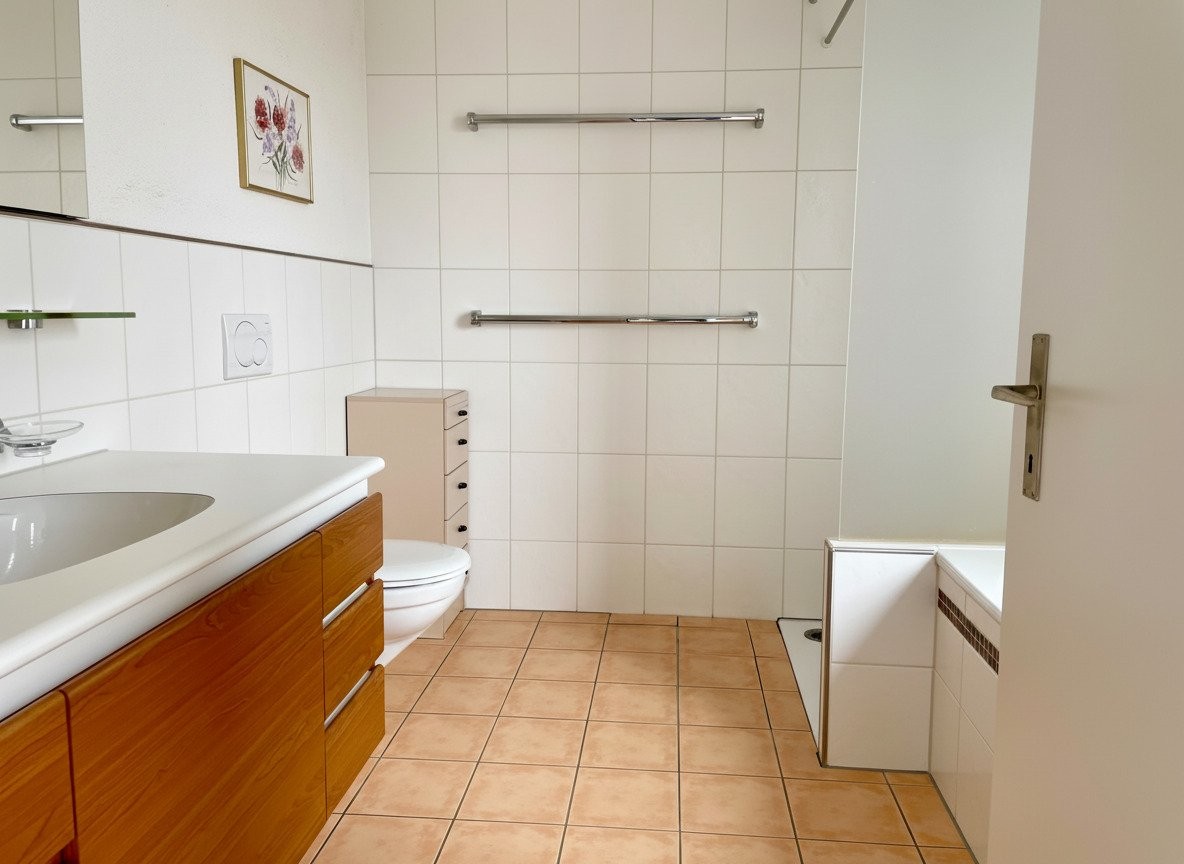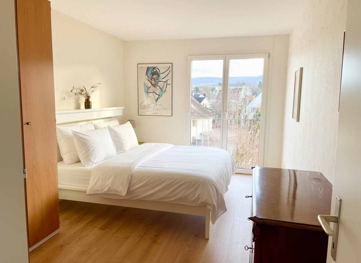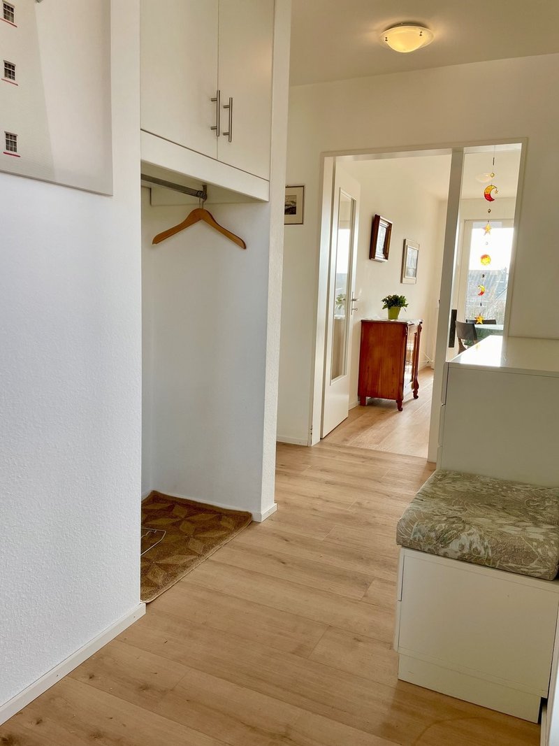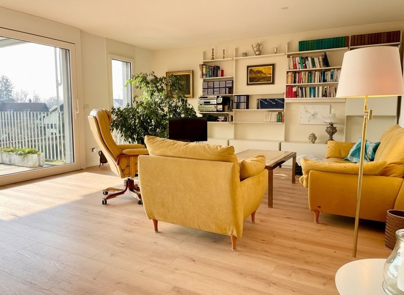 Helle, möblierte 3½-Zi.-Wohnung (110 m²) in Therwil, 3. Stock mit Lift. 2 Balkone (1 gedeckt, Süd), Küche, Bad & Gäste-WC, Waschküche, Parkplatz in Einstellhalle. Grossartige Aussicht!, 110m², 2 Balkone, 1 Einstellhallenplatz. Inkl. Heizung, Strom, Wasser, TV (inkl. Anschluss und Abo), ...