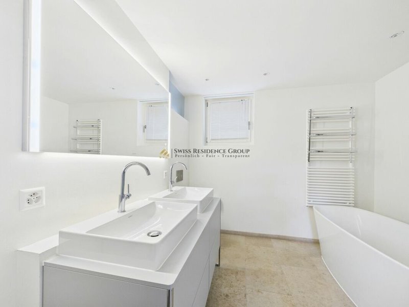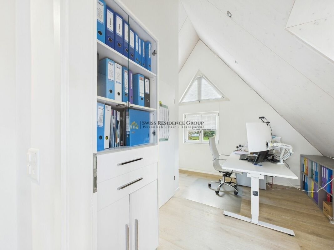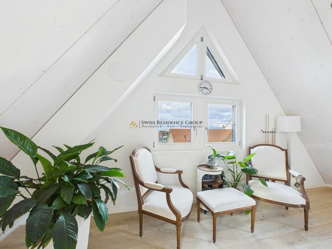 Auf rund 160 m² Wohnfläche verteilen sich 6 Zimmer über drei Wohngeschosse und bieten viel Raum für Familie, Homeoffice und Rückzug. Zwei stilvolle Badezimmer sowie ein zusätzliches Gäste-WC, praktische Nebenräume und eine hochwertige Bulthaup-Küche mit Siemens-Geräten erfüllen höchste Ansprüche. Edle Materialien wie Natursteinböden, geöltes Massivholzparkett und fein verputzte Wände unterstreichen den zeitlos-eleganten Charakter. Ein Kaminofen im Wohnzimmer setzt ein wohnliches Highlight und schenkt dem Raum eine besondere Atmosphäre.