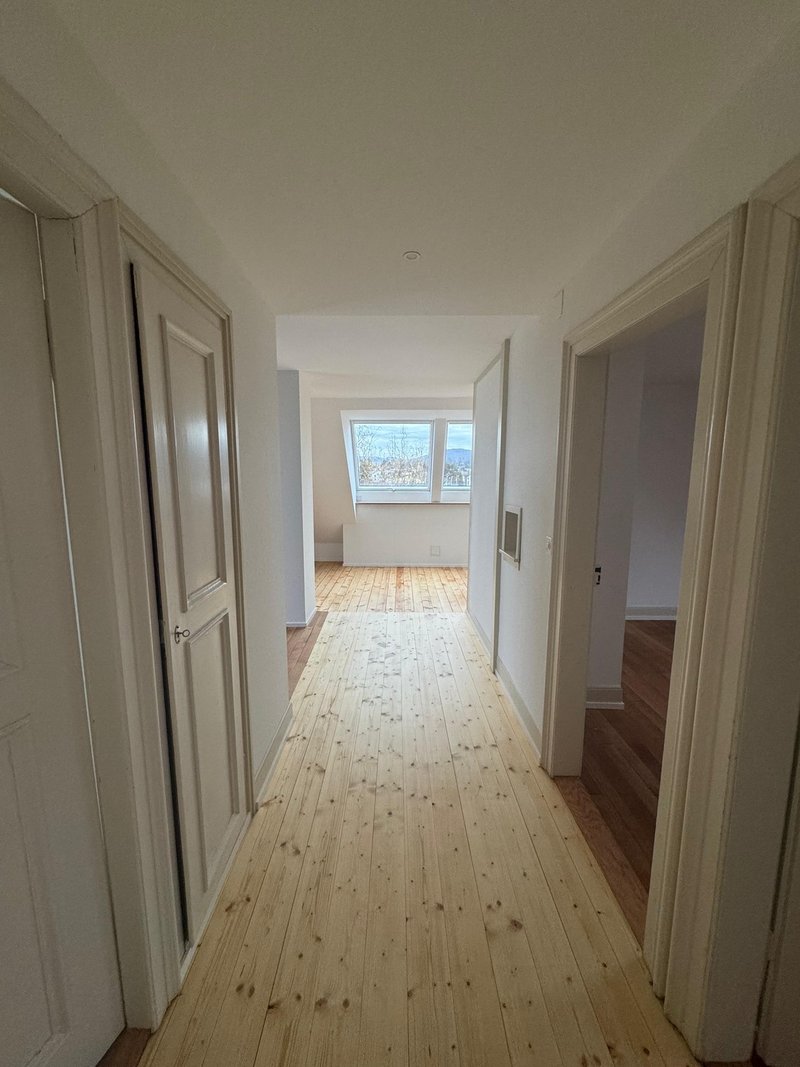 Eine sanft renovierte 4-Zimmerwohnung auf 2 Stockwerken mit dem Charme eines Altbaus und dem Komfort modernen Innenausbaus. 3 Zimmer Küche und Bad auf der 3.Etage, 1 grosses Raum mit grossen Fenstern zur Langen Erle im 4.OG.