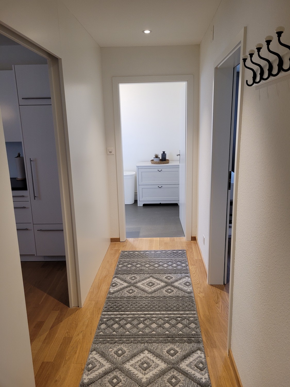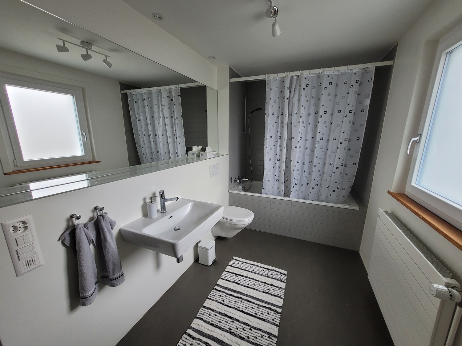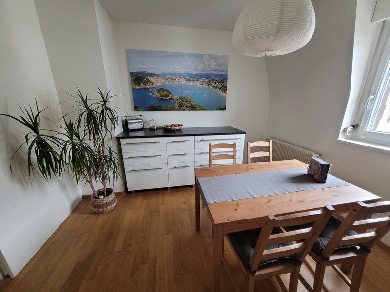 Looking for a fully equipped home with professional standards? This bright 2.5-room apartment in Birsfelden (bordering Basel-City) offers everything for a comfortable stay and productive workdays.