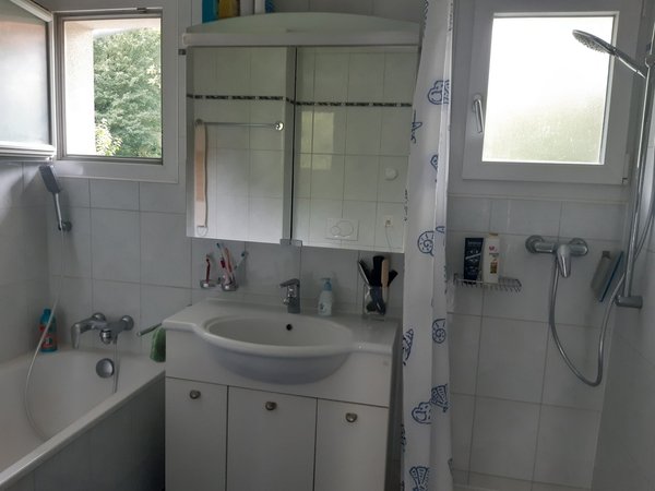 1 OG: Vorplatz, 2 geräumige Zimmer, Badezimmer mit Bad, Dusche und WC