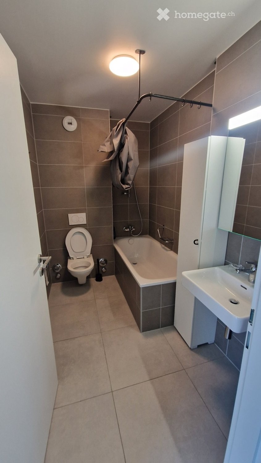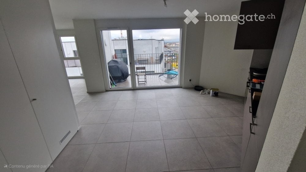 Magnifique appartement Attique au 5 -ème et dernier étage d'un immeuble récent. Cuisine US salon séjour, 2 chambres 1 salle de bain et 2 WC. il a aussi une très grande terrasse qui fait le tour de l'appartement. Dans l'appartement il y a une cuisine équipée frigo, table de cuisson, four, lave vaisselle. il y a 1 machine à laver ainsi que 1 sèche linge de marque Zug. il a aussi une grande cave. Possibilité d'avoir une place de parking au sous sol sécurisé pour 155 FRs par mois