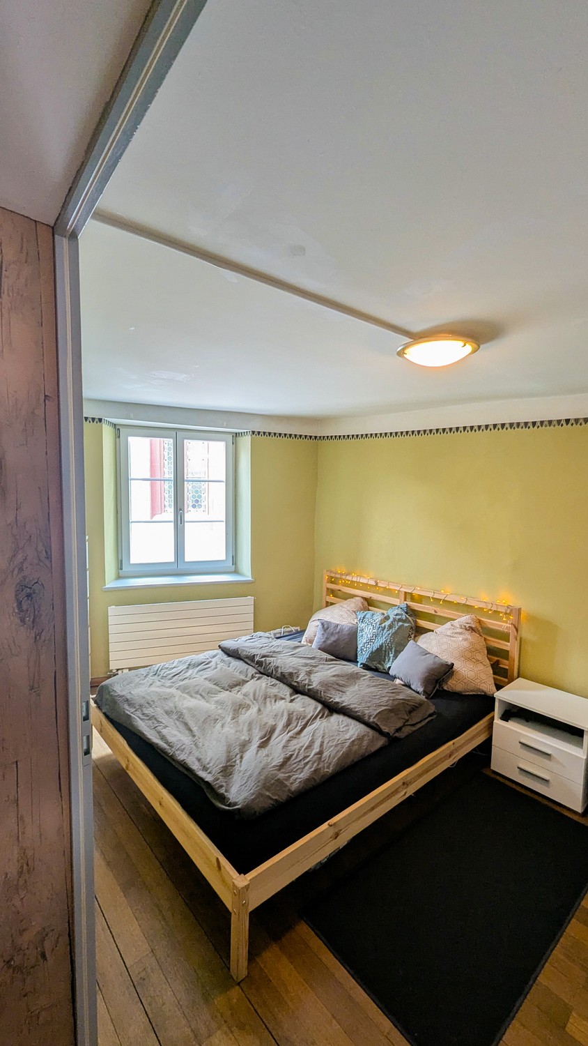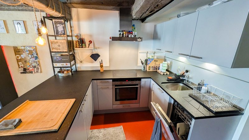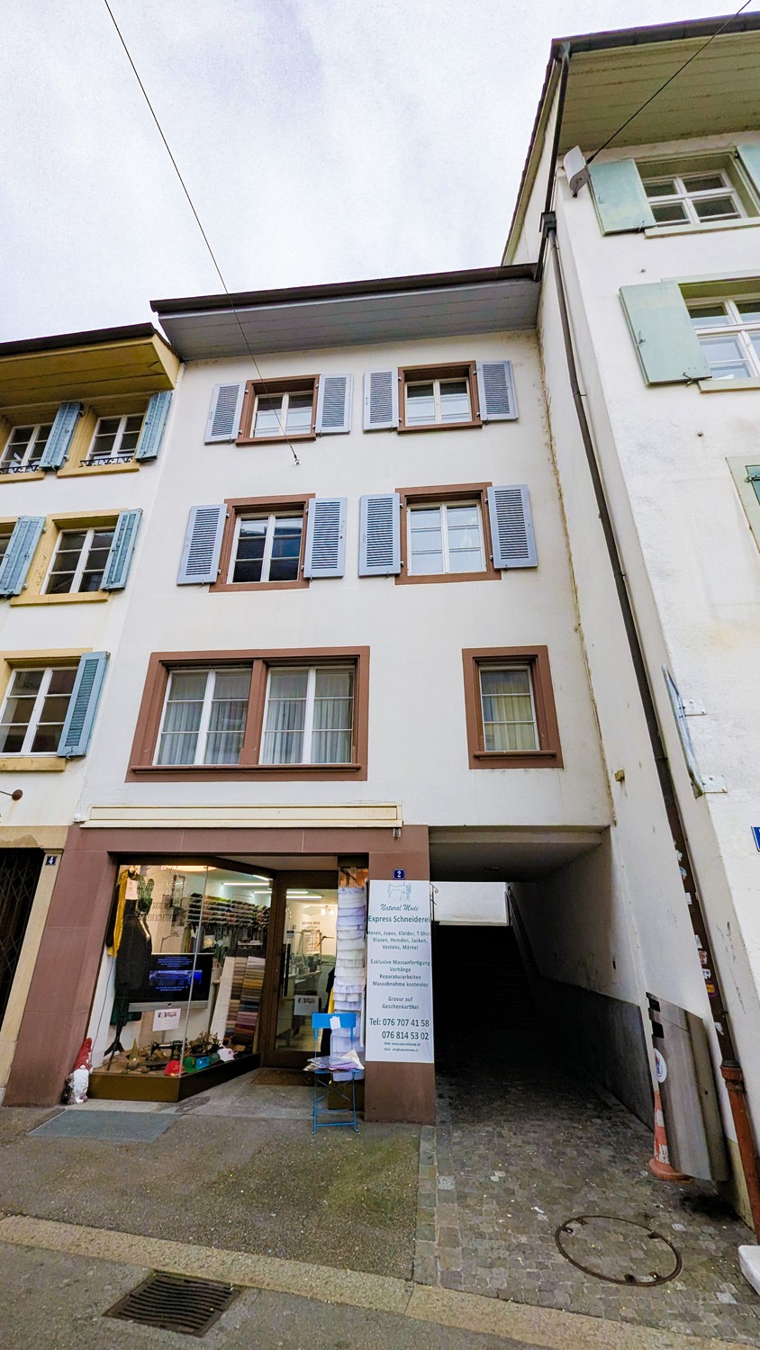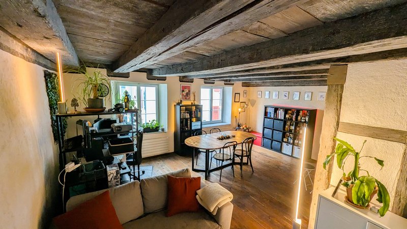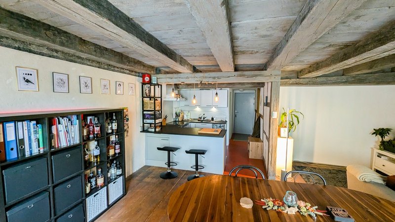 Die Wohnung stammt aus dem 17. Jahrhundert und wurde 2017 renoviert. Decken stehen unter Denkmalschutz und können deshalb nicht für Beleuchtung genutz werden. Altstadt-üblich gibt es auch keinen Balkon. Das Gebäude besitzt keinen Keller, da dies als Ladenfläche (Schneider) genutzt wird.