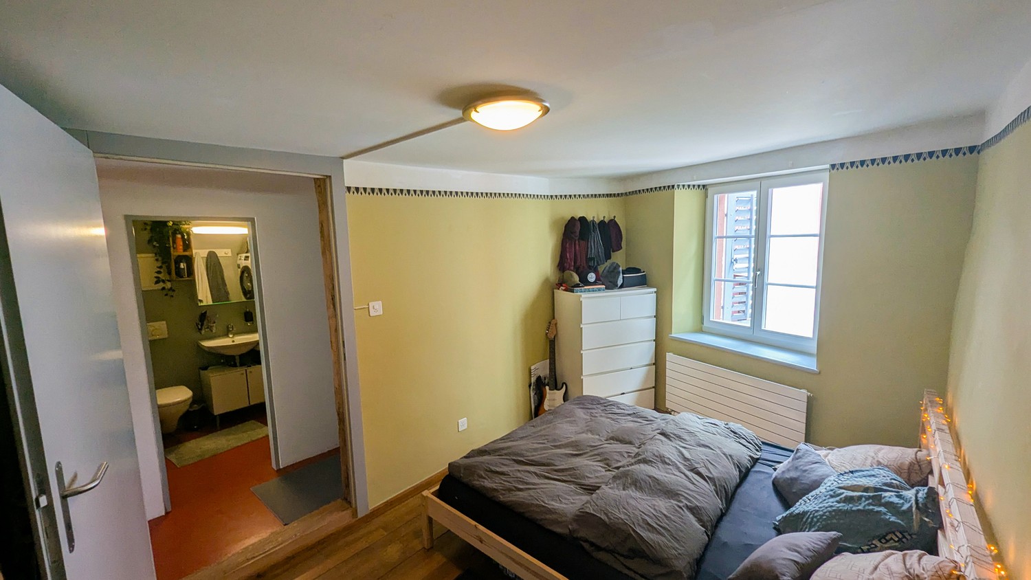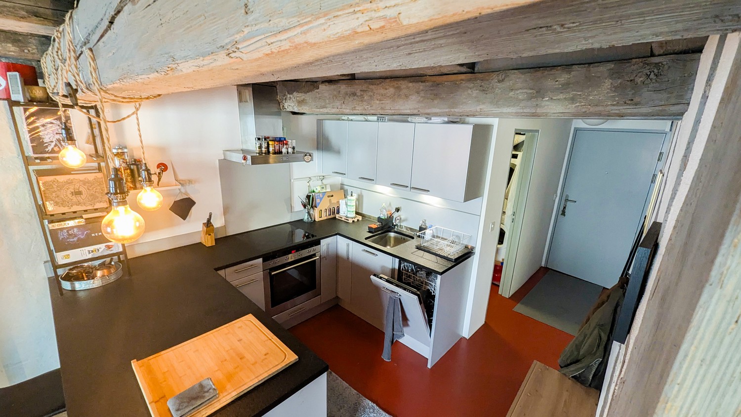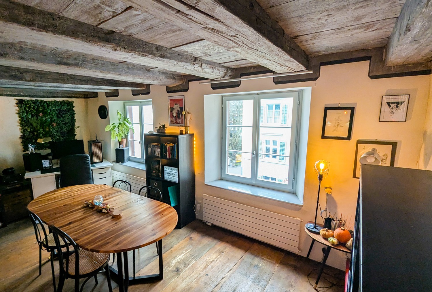 Die Wohnung stammt aus dem 17. Jahrhundert und wurde 2017 renoviert. Decken stehen unter Denkmalschutz und können deshalb nicht für Beleuchtung genutz werden. Altstadt-üblich gibt es auch keinen Balkon. Das Gebäude besitzt keinen Keller, da dies als Ladenfläche (Schneider) genutzt wird.