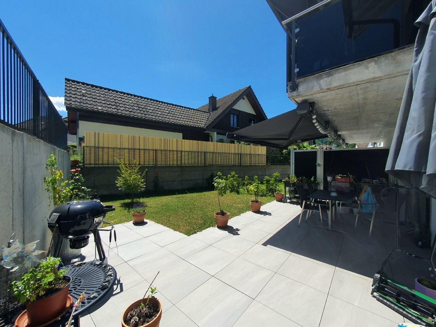 Das besondere Highlight ist der schöne, optimal ausgerichtete Garten mit gedecktem Sitzplatz. Hier können Sie dem Alltagsstress entfliehen und die Sonne geniessen.