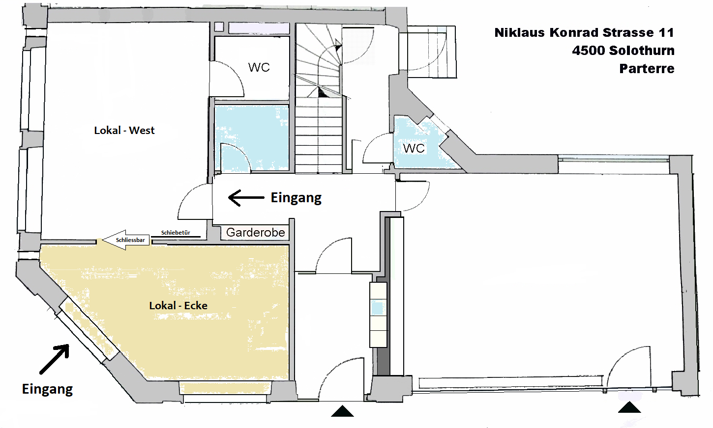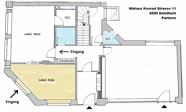 Nur 150 m vom Hauptbahnhof Solothurn vermieten wir nach Vereinbarung ein kleines Geschäftslokal mit gut sichtbarem Eck‑Eingang und einem Schaufenster.
