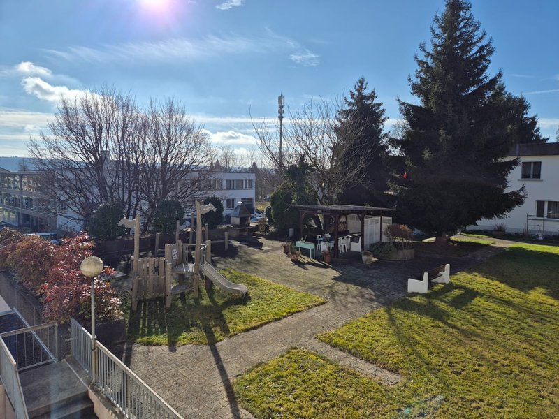Ein grosszügiger Spielplatz innerhalb der Überbauung macht diese Liegenschaft zu einem echten Familienparadies – perfekt für Kinder zum Spielen oder zum entspannten Verweilen im Grünen.