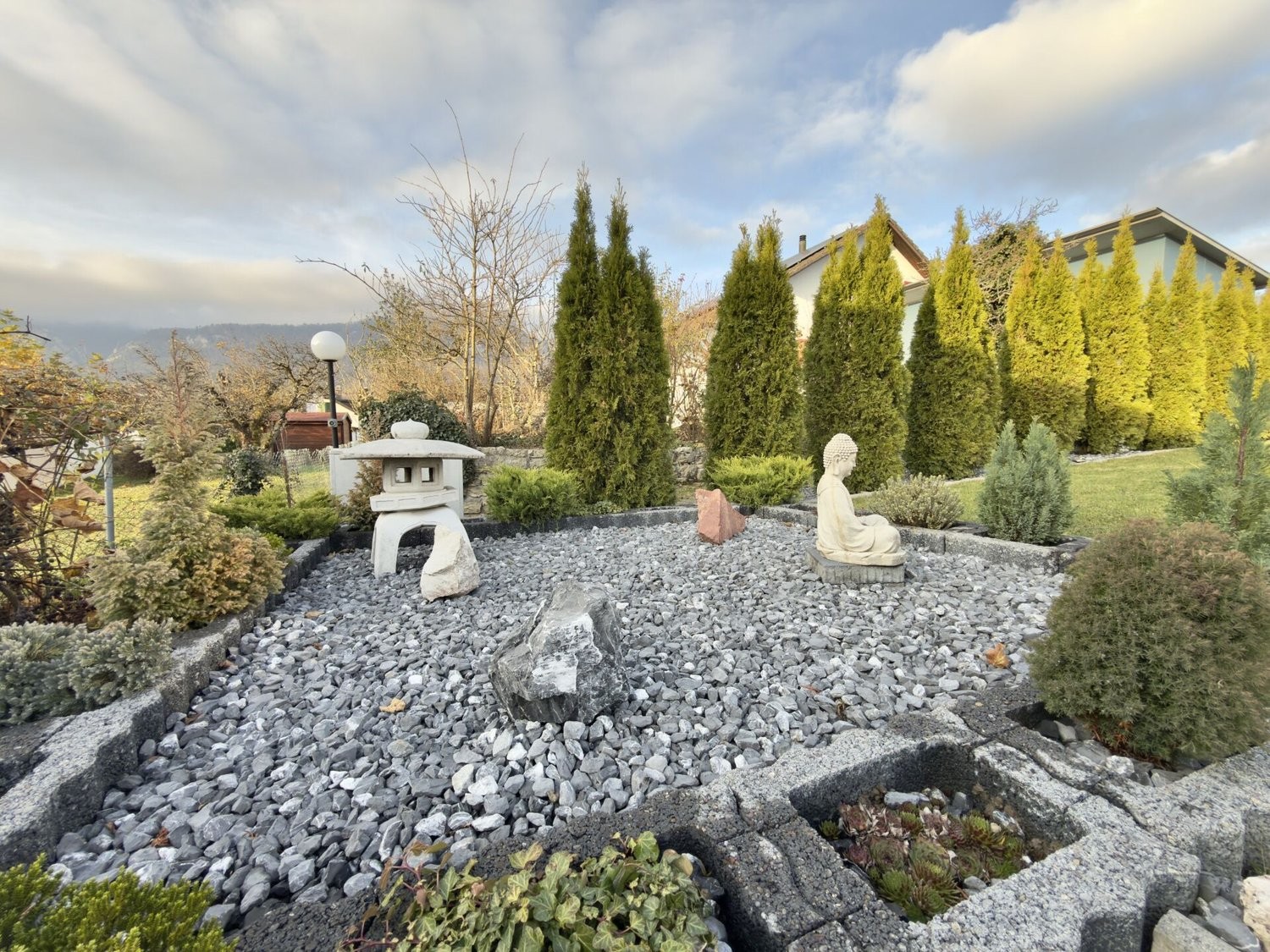 Der gepflegte Garten ist ein echtes Highlight dieser Liegenschaft. Eine grosszügige Rasenfläche, ein sonniger Sitzplatz und ein einladender Pool bieten ideale Voraussetzungen für Erholung und gesellige Stunden mit Familie und Freunden. Von hier aus geniesst man einen herrlichen Blick auf die Alpen und auf der anderen Seite auf den Weissenstein, was diesem Zuhause eine ganz besondere Atmosphäre verleiht.