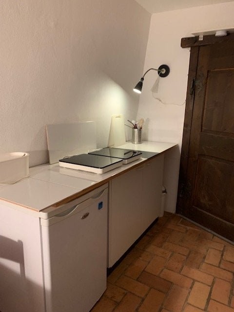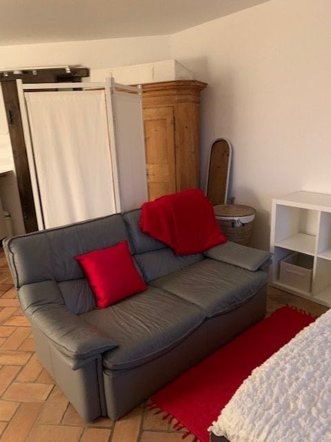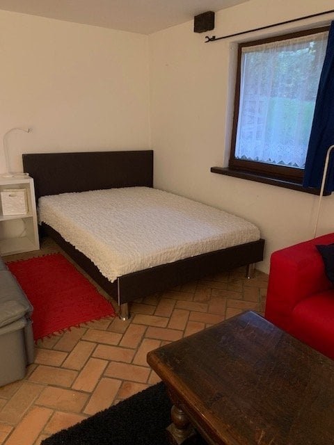 Grosses möbliertes Zimmer mit Kochgelegenheit. Zur Mitbenutzung grosser gemütlicher Vorraum mit Schwedenofen, grosser Tisch mit 4 Stühlen, Badezimmer, Waschküche mit Waschmaschine und Tumbler. Kleiner Backofen, Heissluftfritteuse und kleiner Geschirrspüler vorhanden.