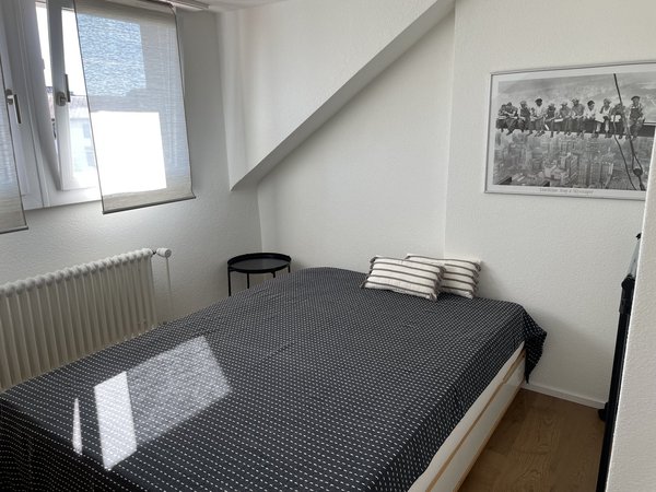 Komplett neu renovierte Dachwohnung mit offener Wohnküche. Komplett möbliert. Auch für Alleinerziehende, Wochenend-Eltern oder Eltern-Teil mit Kind-Familien-WG geeignet, 110m², 1 Balkon, 1 eigener Parkplatz, Öffentliche Parkplätze in der Nähe. Inkl. Heizung, Strom, Wasser, Internet, ...