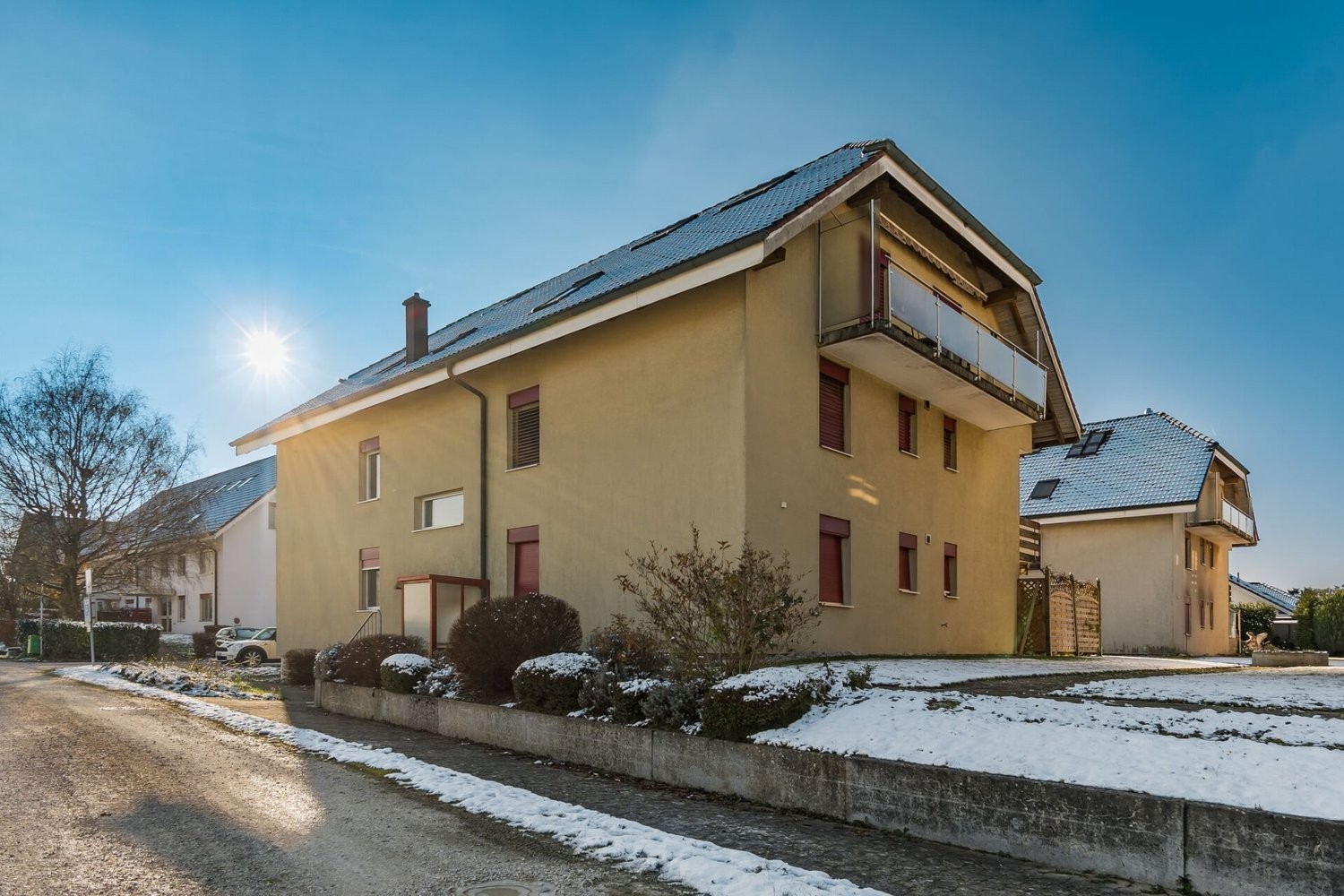 Die Wohnung befindet sich im 1. Obergeschoss eines gepflegten Mehrfamilienhauses mit nur 6 Einheiten, was ein angenehmes, ruhiges Zusammenleben garantiert. Dank der grosszügigen Fensterflächen ist die Wohnung hell und freundlich gestaltet, während der sonnige Balkon zusätzlichen Wohnraum im Freien schafft.