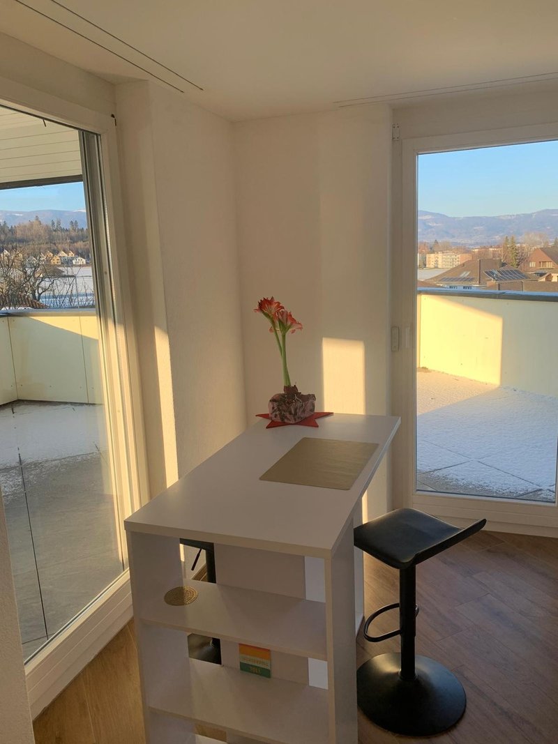 Frisch renovierte grosse Attika Wohnung mit schöner Aussicht auf das Juragebirge und die Alpen mit grosser Balkonterasse und zwei Einstellhallenplätze sind ab sofort zu vermieten für Paare, Familien, Singles oder Gewerbe. Die zwei Einstellhallenplätze sind obligatorisch dazu zu nehmen und kosten je 100,00 CHF pro Monat. Ein Kellerabteil ist ebenfalls inklusive