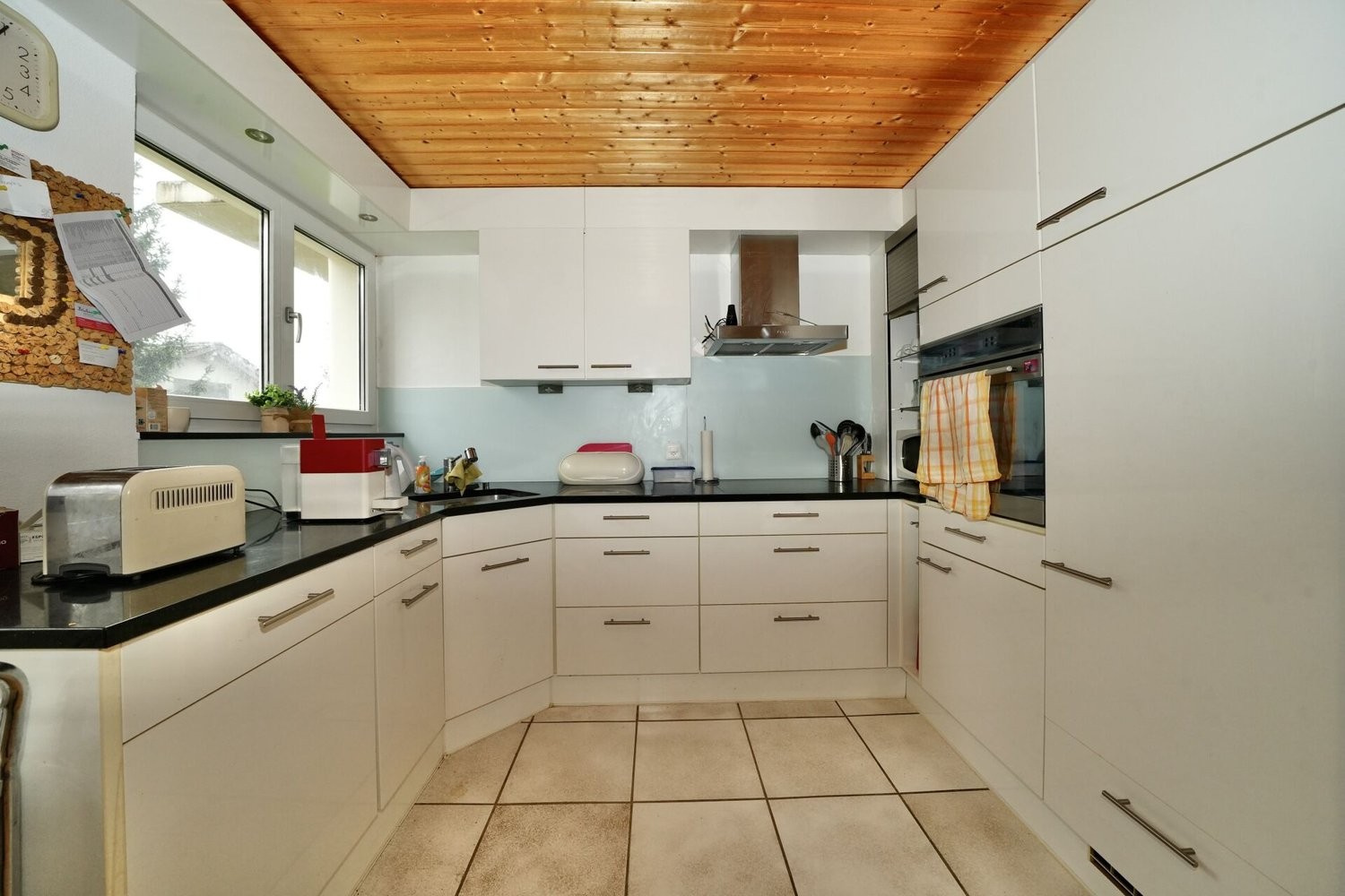 Die grosszügigen Zimmer vermitteln ein angenehmes Raumgefühl. In den Schlafzimmern sowie im Gang wurde Laminat verlegt, während Küche und Badezimmer mit pflegeleichtem Plattenboden ausgestattet sind. Die Decken mit Holz-Täfer verleihen der gesamten Wohnung einen natürlichen und behaglichen Charakter.