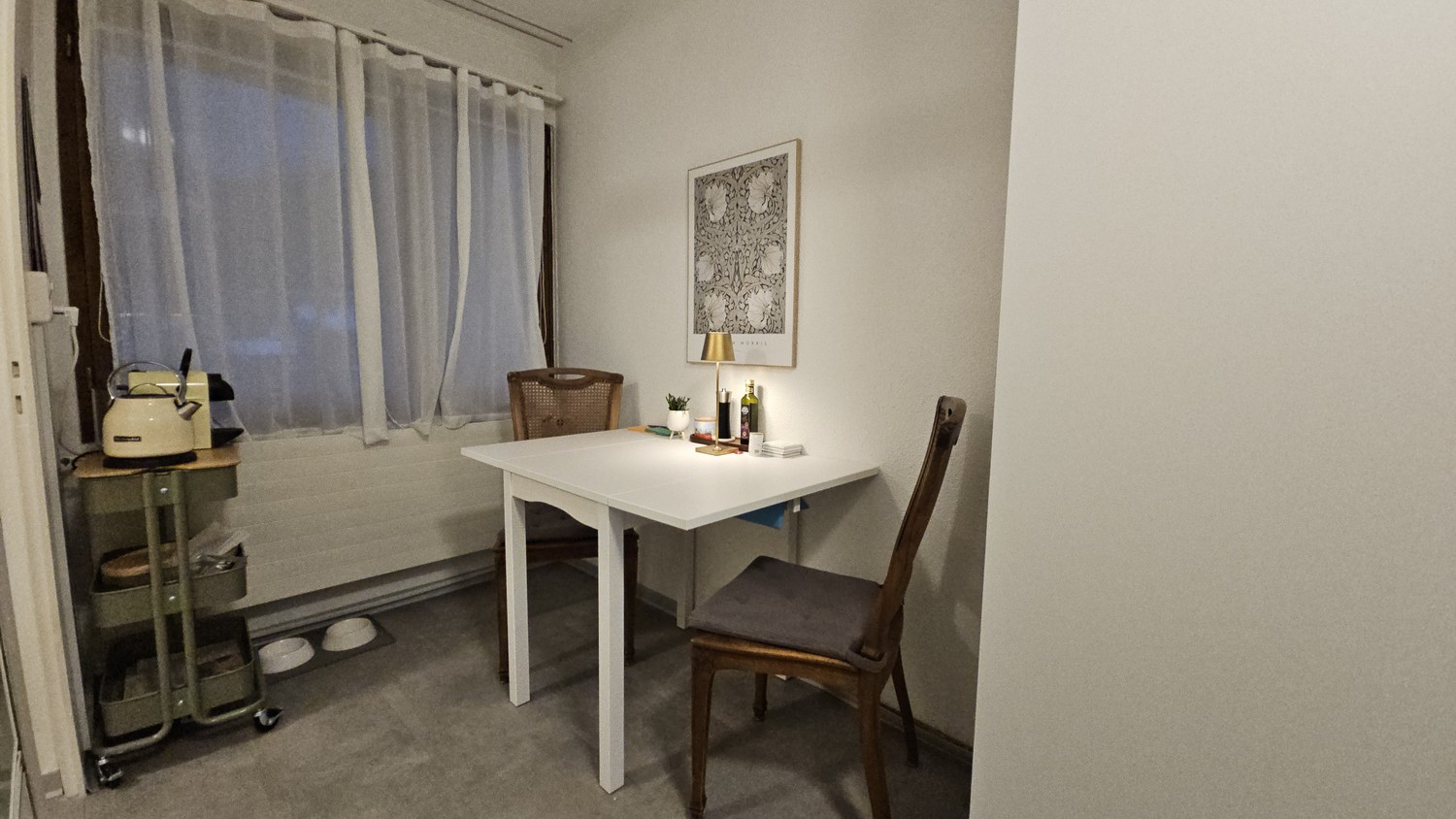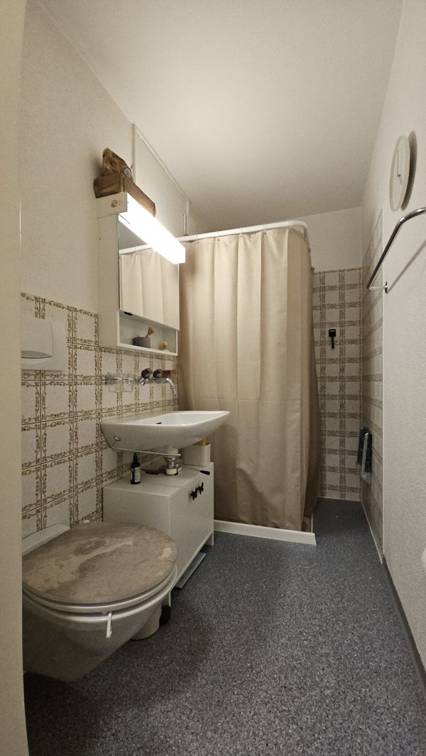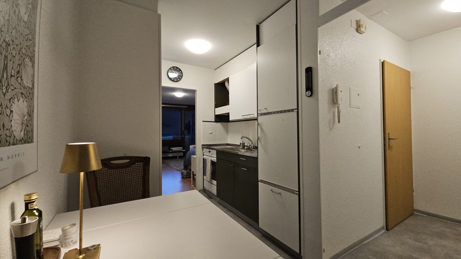 Das Zimmer ist mit einem Laminatboden ausgelegt und verfügt über eine Internetverbindung via Glasfaser (aktuell Wingo). Die Küche bietet mit einem dreitürigen Einbauschrank viel Stauraum. Das Badezimmer überzeugt mit einer geräumigen Dusche.