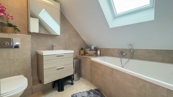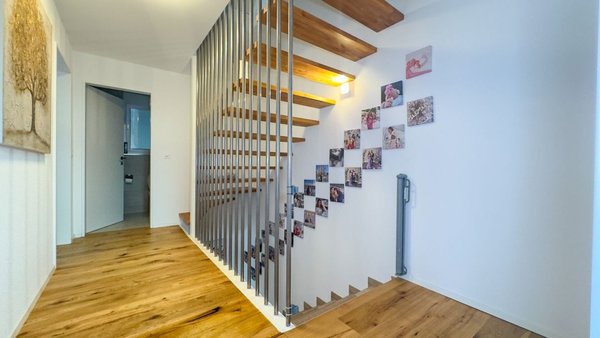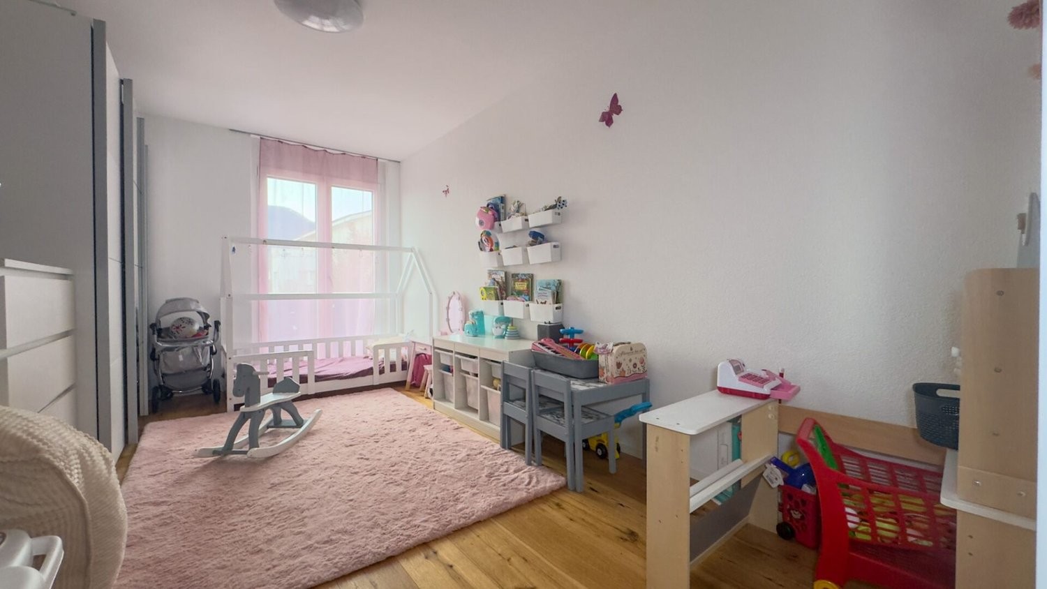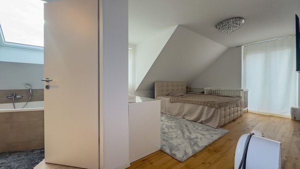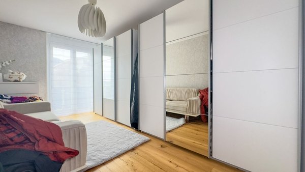 Die Schlafzimmer im Obergeschoss sind gross im Grundriss und mit viel Licht versehen. Durch die attraktive Lage können Sie bei einem Spaziergang im Wald vom Alltag herunterfahren.