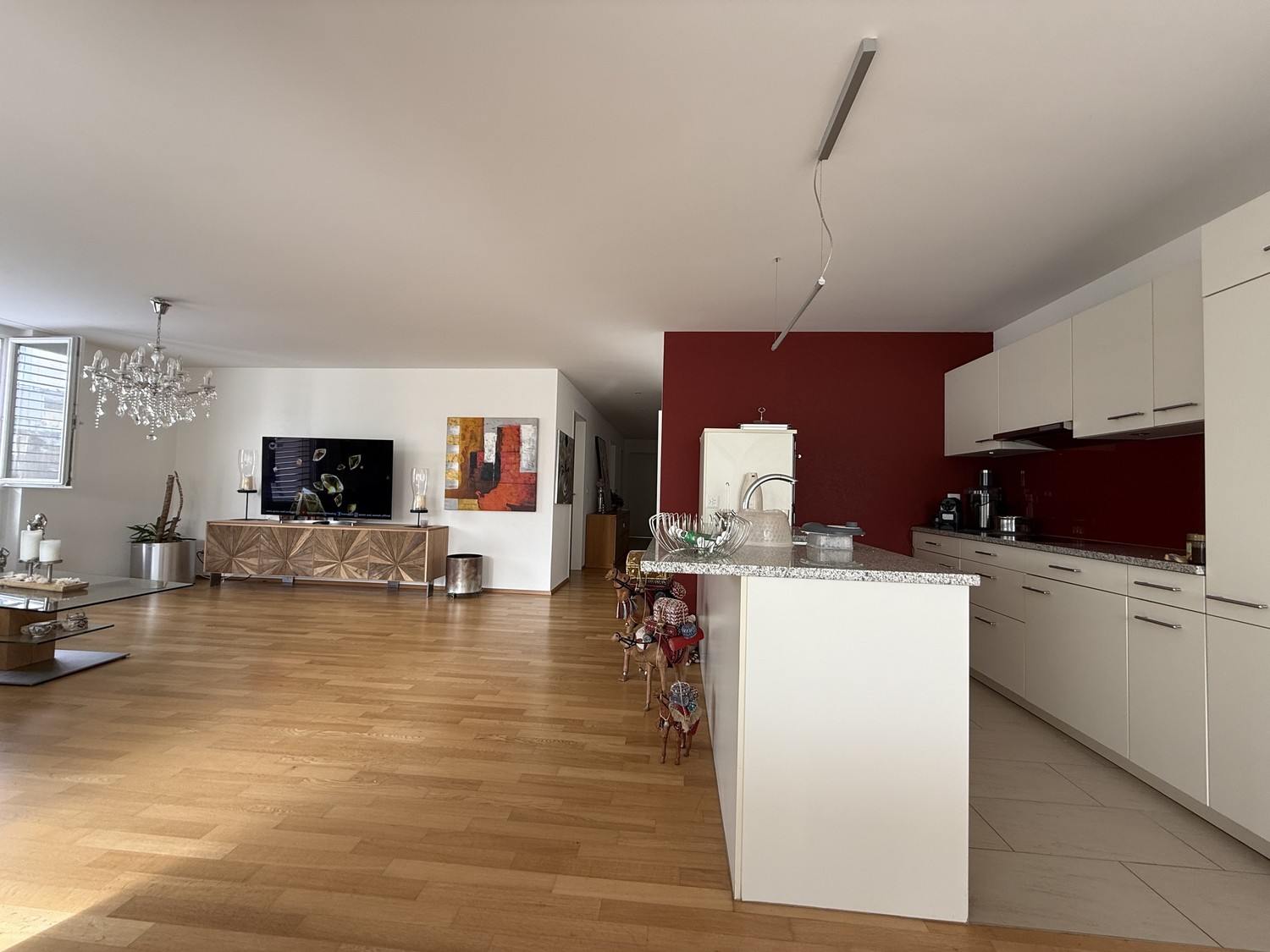 Offene Küche, grosser Wohnbereich, stilvolles Ambiente und ruhige Lage.