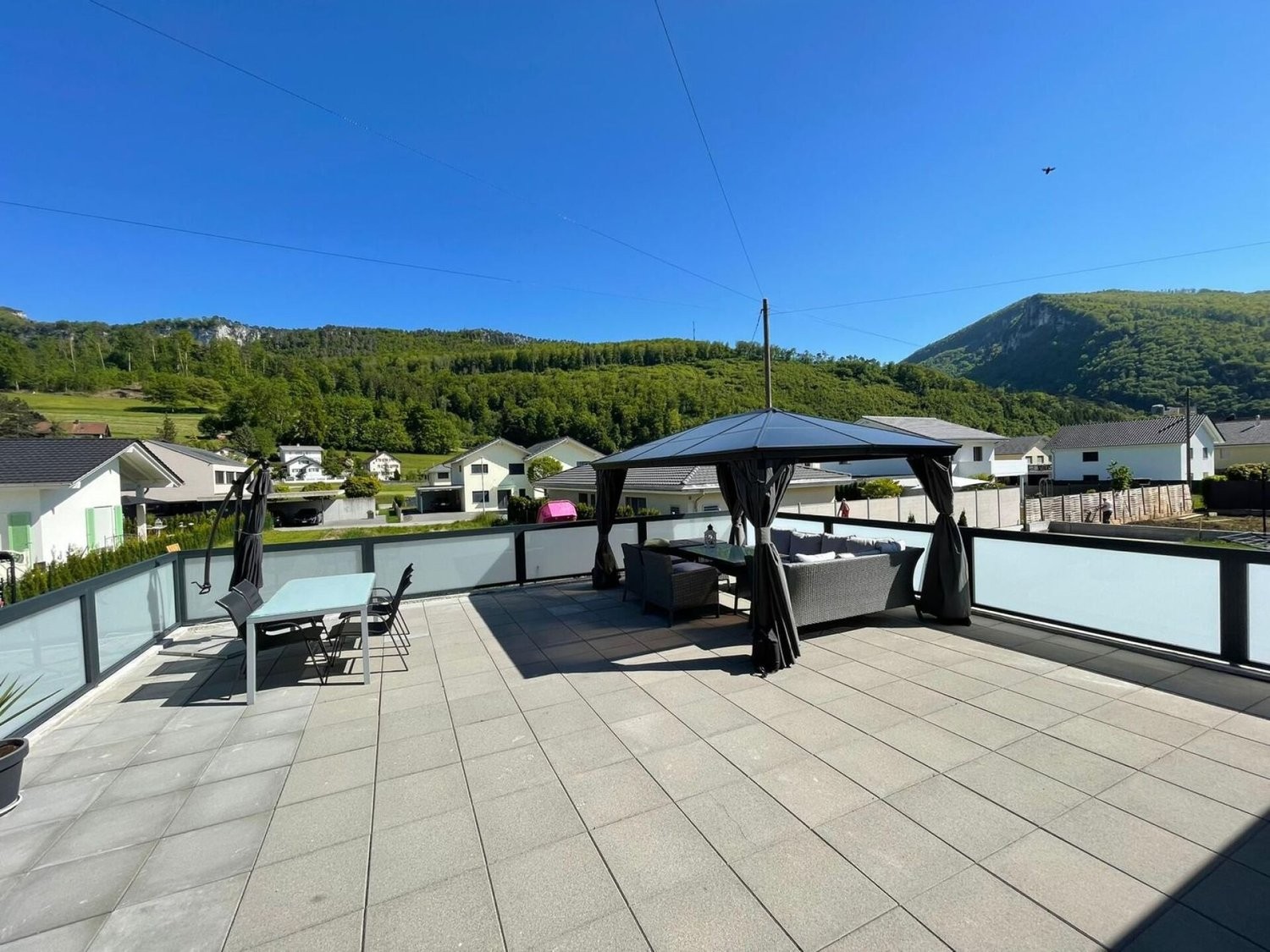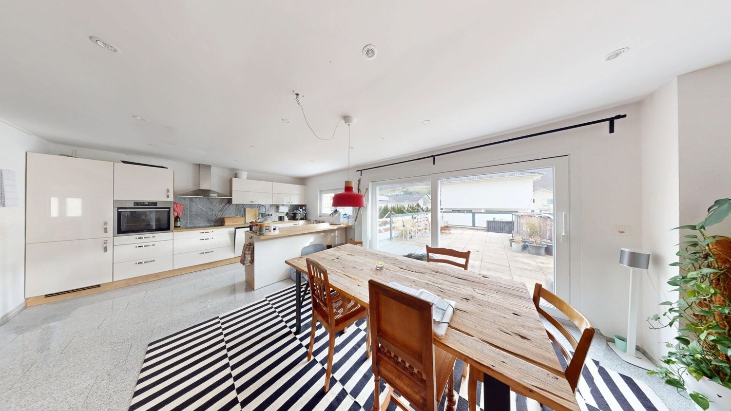 Die offene, moderne Küche fügt sich harmonisch in den Wohnbereich ein und bietet viel Platz zum Kochen und Geniessen. Beide Badezimmer sind hell, gepflegt und zeitgemäss gestaltet. Ein besonderes Highlight ist die grosszügige Terrasse mit rund 81 m² Fläche - ideal zum Entspannen, Grillen oder geselligen Beisammensein im Freien.