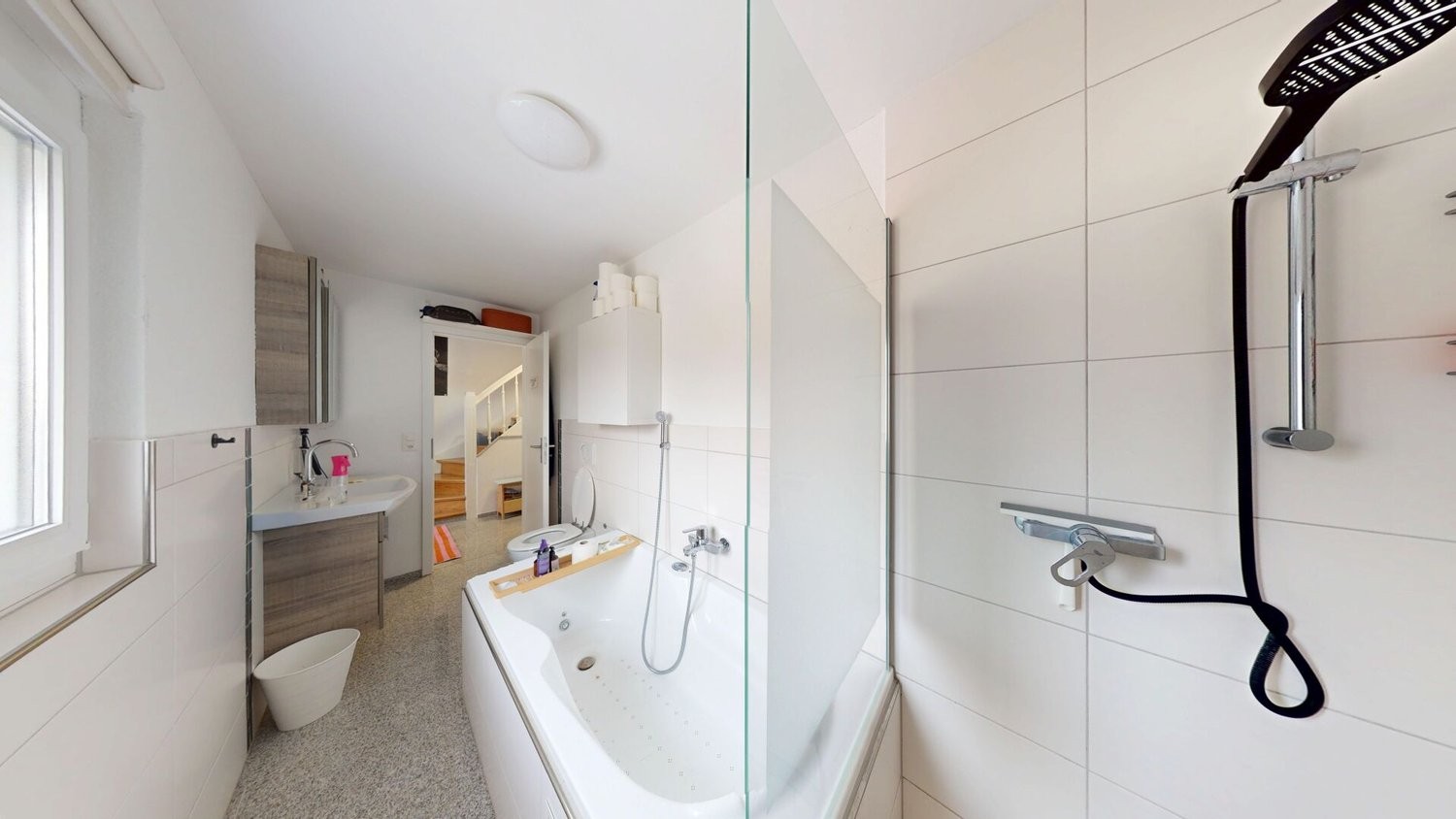 Mit einer Wohnfläche von rund 115 m² bietet das Haus fünf Zimmer, zwei Badezimmer sowie einen praktischen Keller. Im Rahmen der umfassenden Sanierung wurden sämtliche Bereiche erneuert: Heizung, Fenster, Böden, Wände, Küche und Badezimmer. Eine moderne Wärmepumpe mit Bodenheizung sorgt für angenehme Wärme, während die neue Aussenisolation nach aktuellem Energiestandard einen effizienten Energieverbrauch gewährleistet.