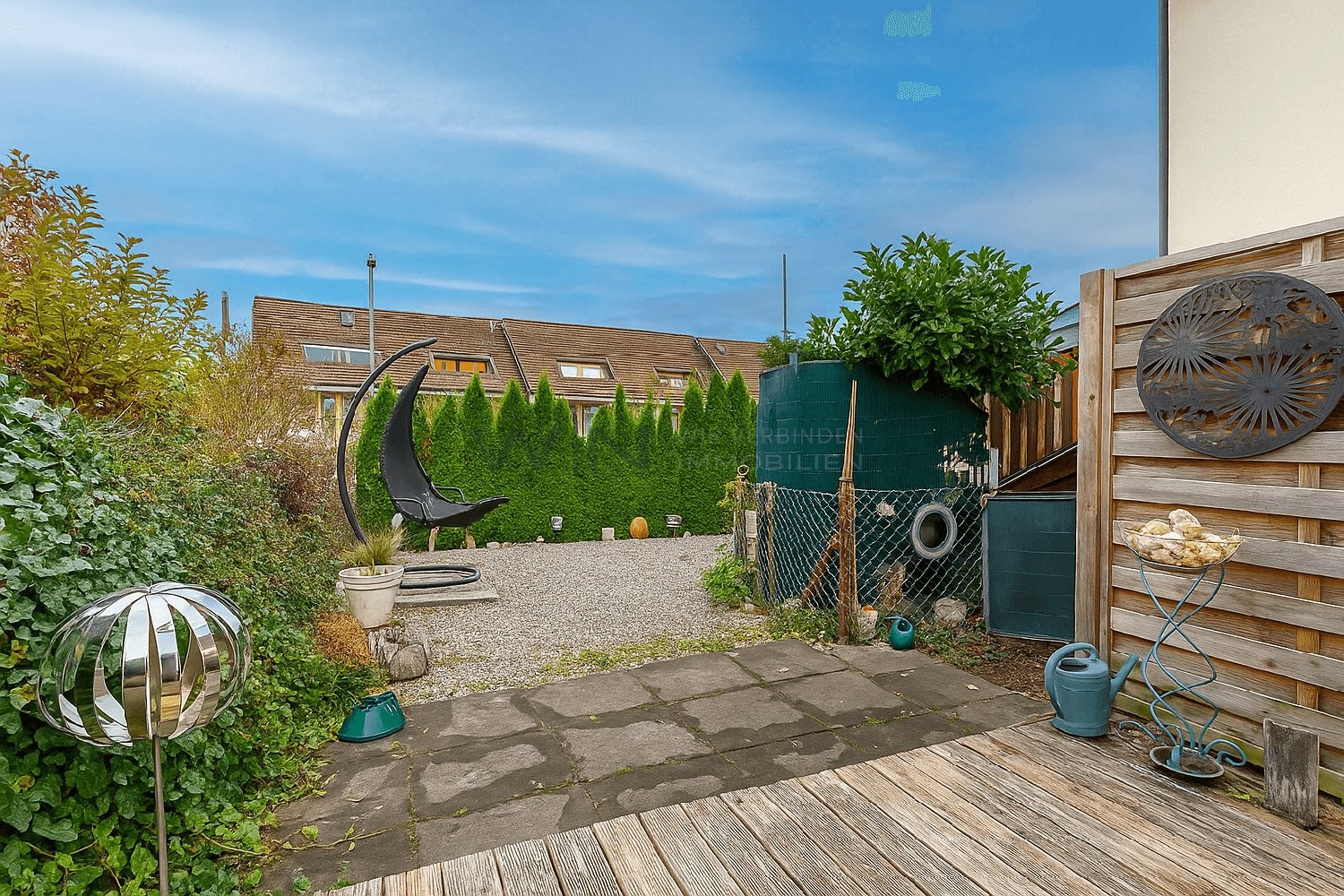 Ein besonderes Schmuckstück ist der eigene Eingang, der dieser Wohnung das Flair eines kleinen Häuschens verleiht. Im offenen Wohnzimmer mit Kamin erleben Sie wohltuende Wärme und eine gemütliche Wohnatmosphäre. Dank nur einer weiteren Partei im Haus geniessen Sie hier maximale Privatsphäre und Ruhe. Ein absolutes Highlight ist der grosszügige, private Gartensitzplatz ? perfekt zum Entspannen, Essen im Freien oder einfach zum Auskosten der ruhigen Umgebung. Viel Stauraum, ein Aussenparkplatz und sehr geringe Nebenkosten machen dieses Angebot besonders attraktiv.