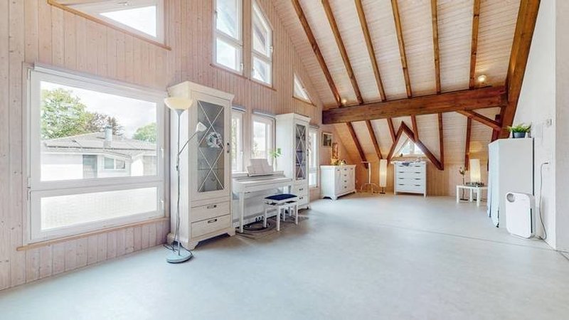 Der helle Wohn- und Essbereich überzeugt mit direktem Zugang zum rund 60 m² grossen Wintergarten, der den Wohnraum spürbar erweitert und ganzjährig nutzbar ist. Eine offene Galerie unterstreicht das luftige Raumgefühl und kann flexibel als Arbeits-, Lese- oder Aufenthaltsbereich genutzt werden. Im Untergeschoss befindet sich zudem eine separate 1.5-Zimmer-Einliegerwohnung.