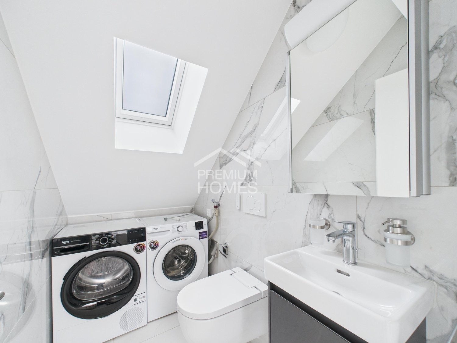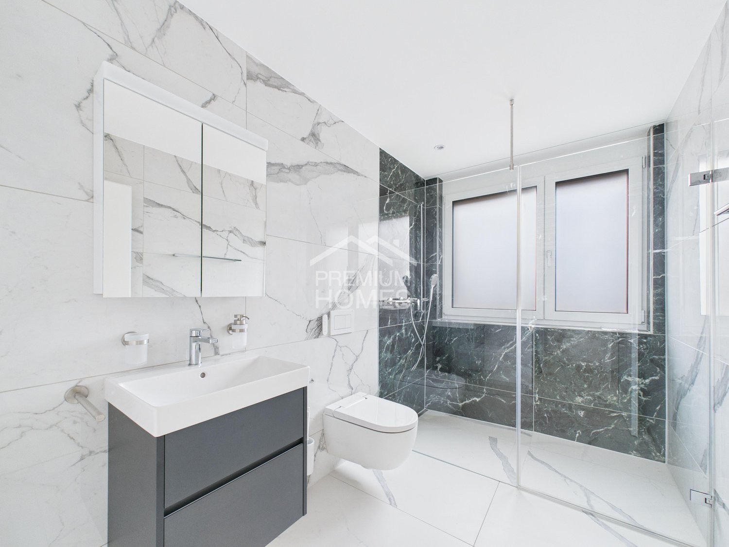 Die Wohnung ist schwellenlos gestaltet und verfügt über komfortable elektrische Lamellen- und Sonnenstoren. Eine stilvolle Nasszelle sowie eine separate Gäste-Toilette sorgen für hohen Wohnkomfort im Alltag.