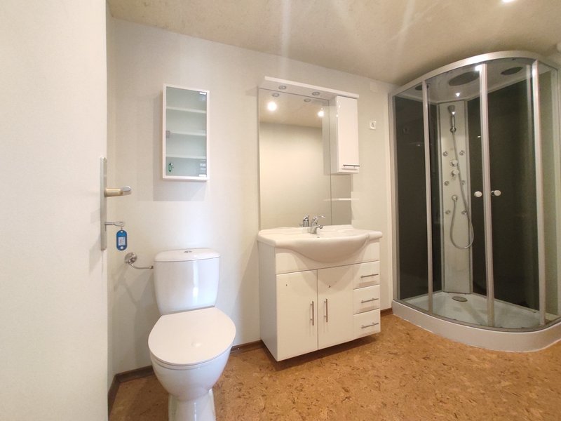 - Badezimmer im OG mit Designer Dusche und Korkboden