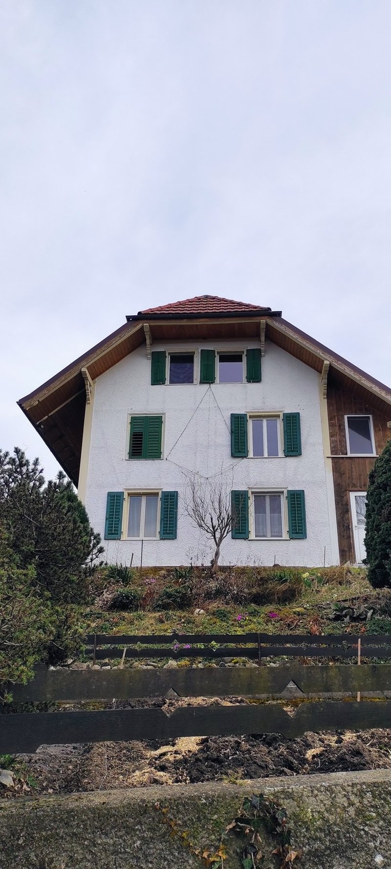 Einzigartige, ruhige Etagen Wohnung, 4 Zimmer neue interne Treppe, saniertes ehemaliges Fachwerk-Bauernhaus, Hanglage mit Fernsicht Jura.
