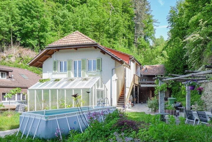 Das Haus umfasst eine 3.5-Zimmer- und eine 5.5-Zimmer-Wohnung, beide mit grosszügigen Küchen und modernen Nassbereichen. Der Aussenbereich ist ein echtes Highlight: Eine gemütliche Pergola mit Grill, ein gepflegter Garten mit grossflächiger Grünfläche, ein Treibhaus, ein mobiler Pool sowie ein Brunnen mit eigener Quelle schaffen eine idyllische Oase.
