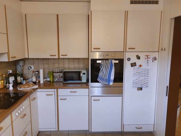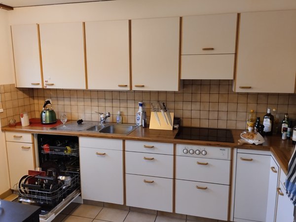 Küche: Neue (2024) Geschirspüler (mit Reinigungs- und Hygieneprogramm), Heizplatten, Backoffen und Kühlschrank gehören zur Wohnung.