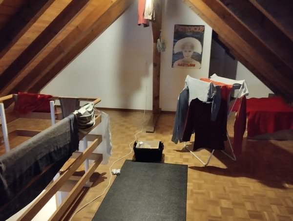 Waschmaschine, Trockner und Trocknenraum mit Heizuftmaschine befinden sich im Keller