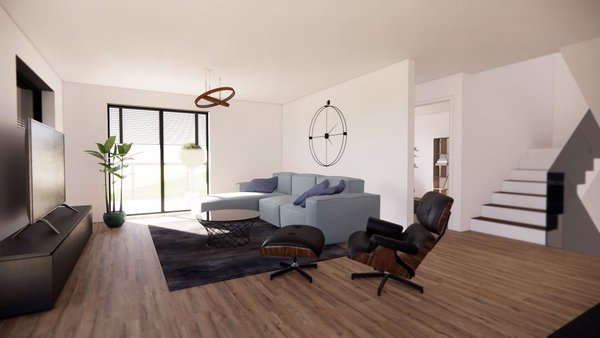 Die beiden Haushälften bieten ein grosszügiges und lichtdurchflutetes Raumgefühl auf drei Etagen. Im Erdgeschoss befindet sich ein offener Wohn- und Essbereich mit direktem Zugang zu einem über 85 m² grossen Sitzplatz, ein Ort zum Geniessen und Verweilen. Eine offene und moderne Küche können Sie sich nach eigenen Wünschen selbst zusammenstellen. Ergänzt wird das Raumangebot durch ein praktisches Büro- oder Gästezimmer sowie ein separates Gäste-WC.