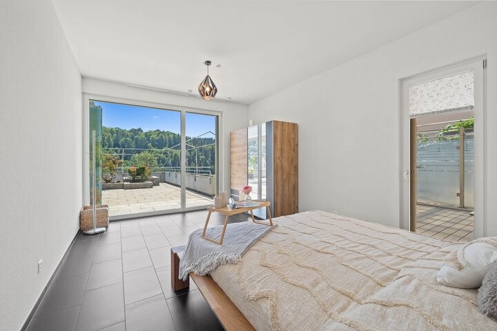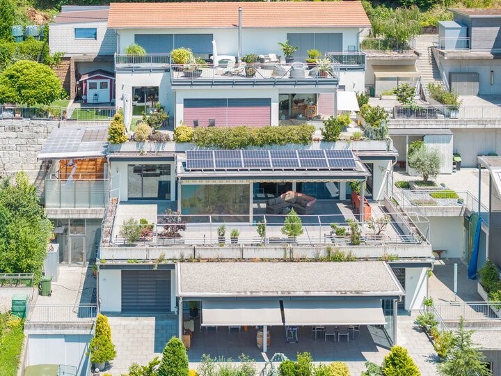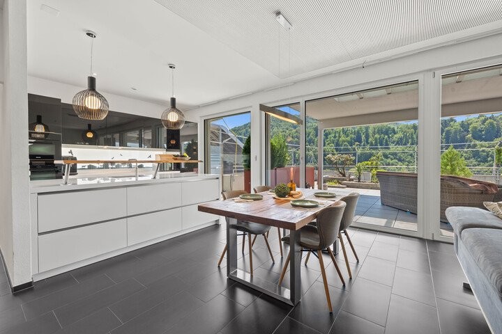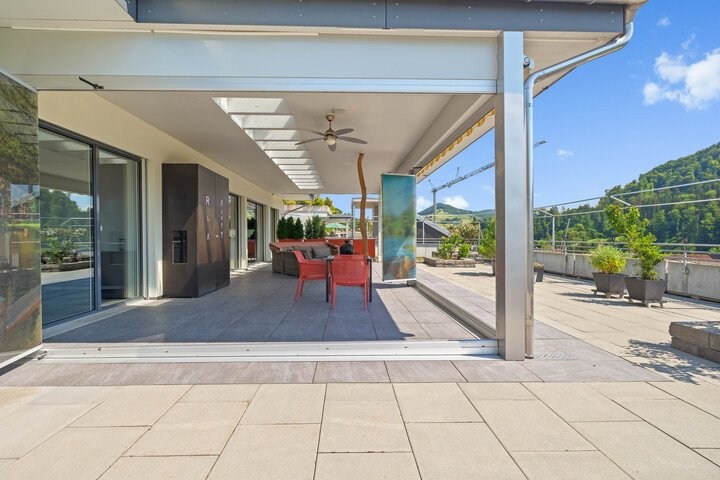 An bevorzugter Hanglage in Mettau verkaufen wir ein stilvolles Terrassenhaus, das mit grosszügigem Raumgefühl, durchdachter Architektur und einzigartigen Aussenflächen begeistert.Der helle Wohn- und Essbereich öffnet sich direkt zur überdachten Terrasse und verbindet Innen- und Aussenraum harmonisch. Die offene Küche mit hochwertigen Geräten und reichlich Stauraum erfüllt höchste Ansprüche an Funktionalität und Design. Mehrere flexibel nutzbare Zimmer, teils mit direktem Terrassenzugang und Badezimmer en suite, bieten vielfältige Wohnideen. Zwei stilvoll gestaltete Nassbereiche ? ein Bad/Dusche/WC und eine separate Dusche/WC ? unterstreichen den hohen Ausbaustandard.Ein besonderes Highlight ist die 183 m² grosse Terrassenfläche mit traumhafter Aussicht über das Mettauertal. Ein zusätzlicher Grillplatz macht sie zum perfekten Ort für entspannte Stunden und gesellige Abende.Komfortlüftung und Enthärtungsanlage sorgen für ein angenehmes Raumklima und verlängern die Lebensdauer der Haushaltsgeräte. Dank Photovoltaikanlage und Fernwärme profitieren Sie zudem von tiefen Betriebskosten und nachhaltiger Energieversorgung.Eine Doppelgarage ist im Kaufpreis inbegriffen und rundet das Angebot ab.Ein Terrassenhaus, das Eleganz, Wohnqualität und Panorama perfekt vereint ? ideal für Menschen mit Sinn für das Besondere.Interessiert? Weitere Informationen, Bilder und einen virtuellen Rundgang sowie Besichtigungsmöglichkeiten finden Sie unter: propertyowner.ch/de/immobilien/25-11857