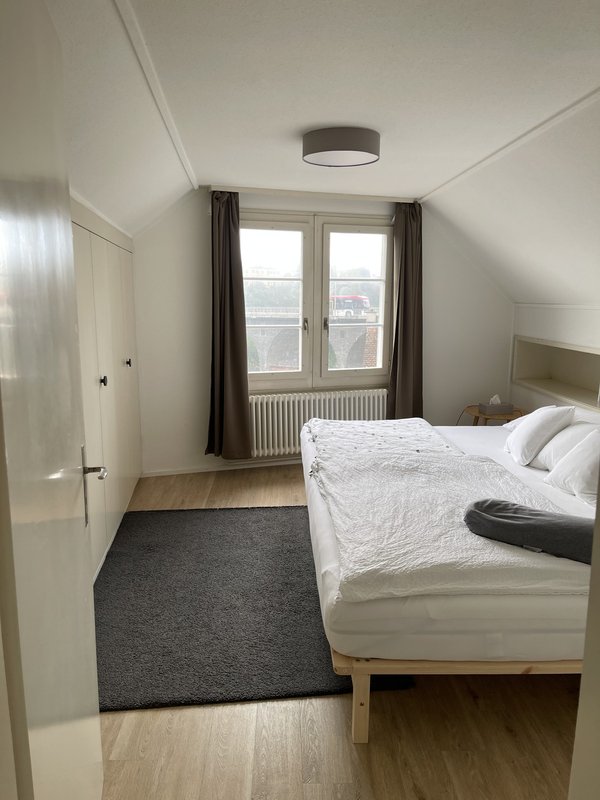 Schlafzimmer mit Ausblick auf das pulsierende Stadtleben von Baden