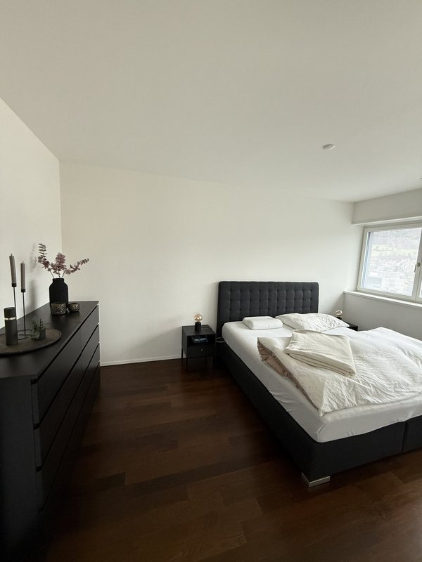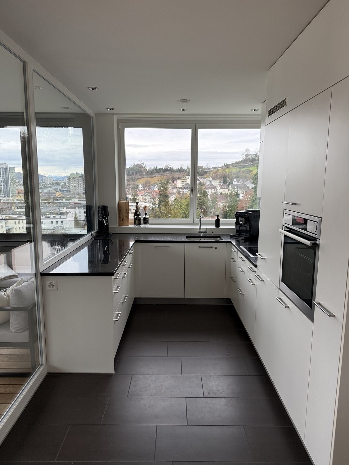 Moderne 3.5-Zimmerwohnung 16 Minuten mit dem Zug von Zürich entfernt. An ruhiger Lage und dennoch sehr zentral im 6. Stock, mit Ausblick auf die Ruine Stein, 87m², im 6. Stock, mit Lift, 1 Balkon, Wintergarten, 1 eigene Garage, Autobahneinfahrt in der Nähe. Inkl. Heizung, Strom, Wasser, ...