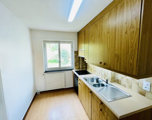 zu vermieten: 3-Zimmer-Wohnung im ersten Stock mit Parkmöglichkeit (für einen bestimmten Zeitraum).