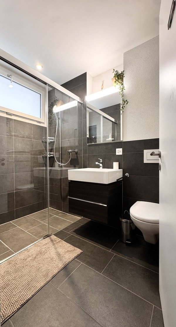 Dazu ein EIGENES Bad, dass du alleine benutzt, mit grosser Naturstein Dusche.