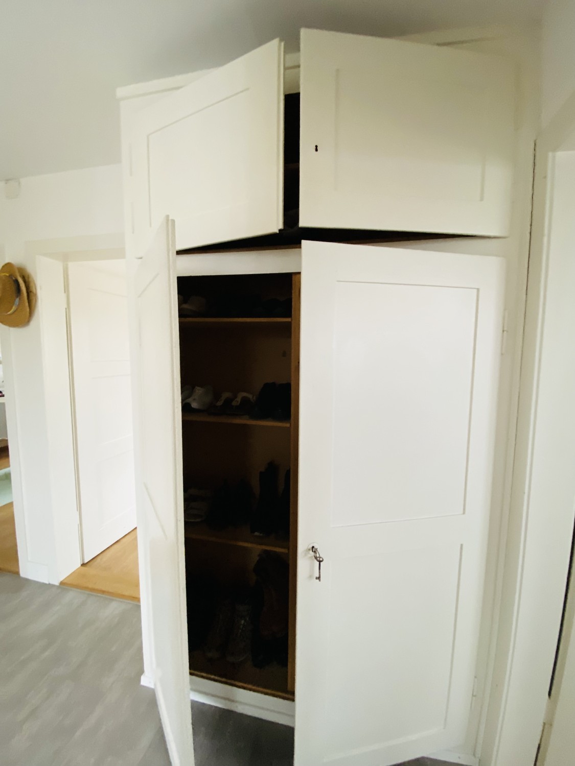 Die Wohnung besitzt drei Zimmer, eine grosse Küche mit viel Stauraum sowie grosszügige Korridore, die ebenfalls Platz für Schränke bieten. Auch im Badezimmer sind praktische Stauschränke vorhanden. Auf Wunsch kann ein antikes Sideboard übernommen werden. In der Küche befinden sich eine neue Spülmaschine (Einbau Juli), ein Backofen und ein grosser Kühlschrank.