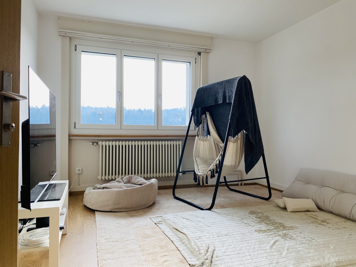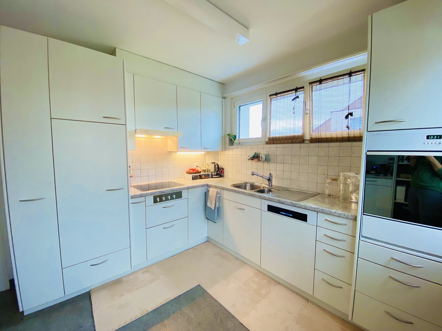 Zwei Balkone gehören ebenfalls dazu. Die Waschküche mit Waschmaschine und Tumbler wird mit einem Mitmieter geteilt. Zudem verfügt die Wohnung über einen Keller, einen Heizraum und ein Mansardenzimmer direkt über der Wohnung mit traumhaftem Blick ins Grüne. Ein zusätzlicher Estrich bietet weitere Nutzmöglichkeiten, zum Beispiel als Hobbyraum.